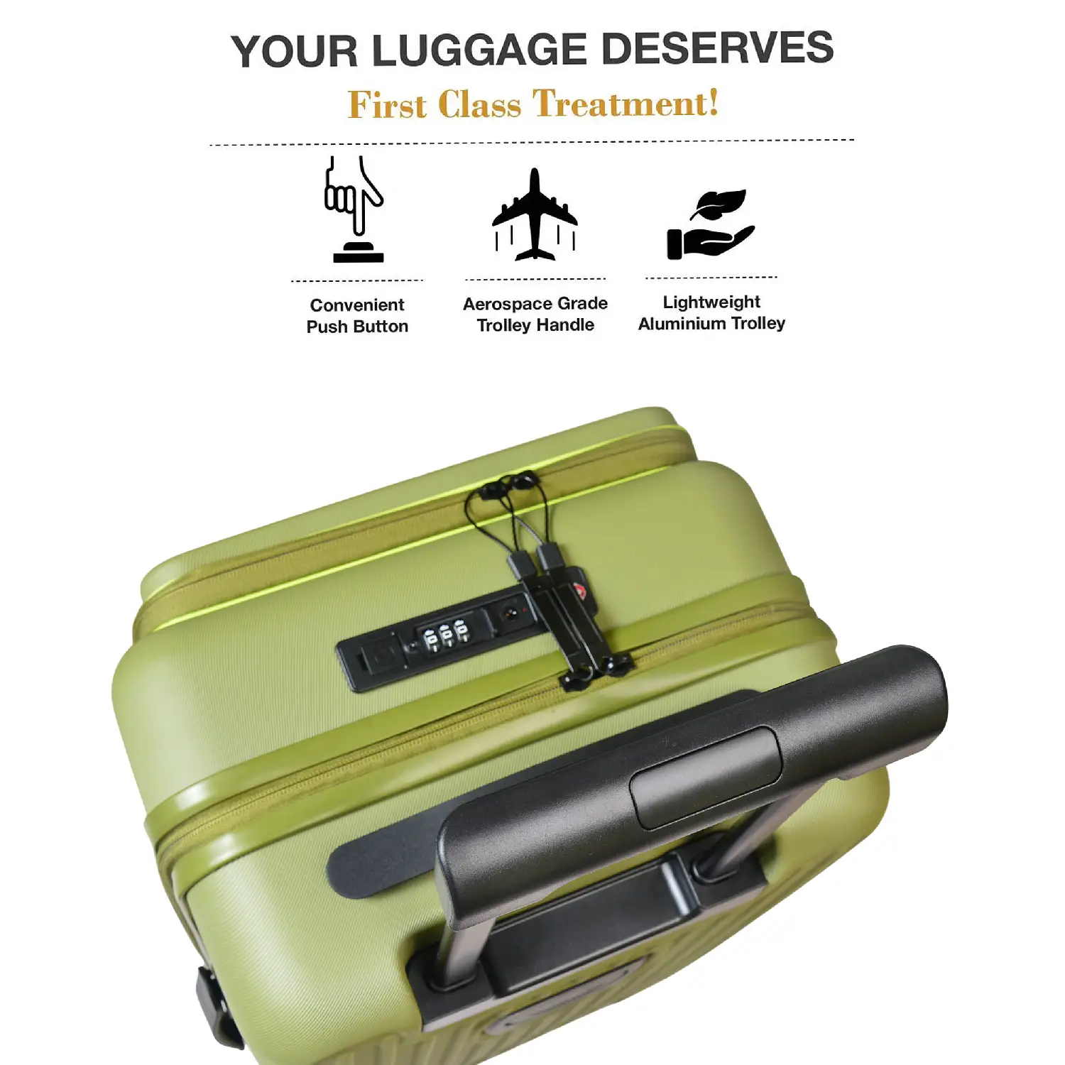 The Amazon Green Smart Cabin Trolley is a 20-inch carry-on featuring a laptop compartment, dual USB ports, and TSA security. It is the perfect blend of style and utility for the modern traveler.