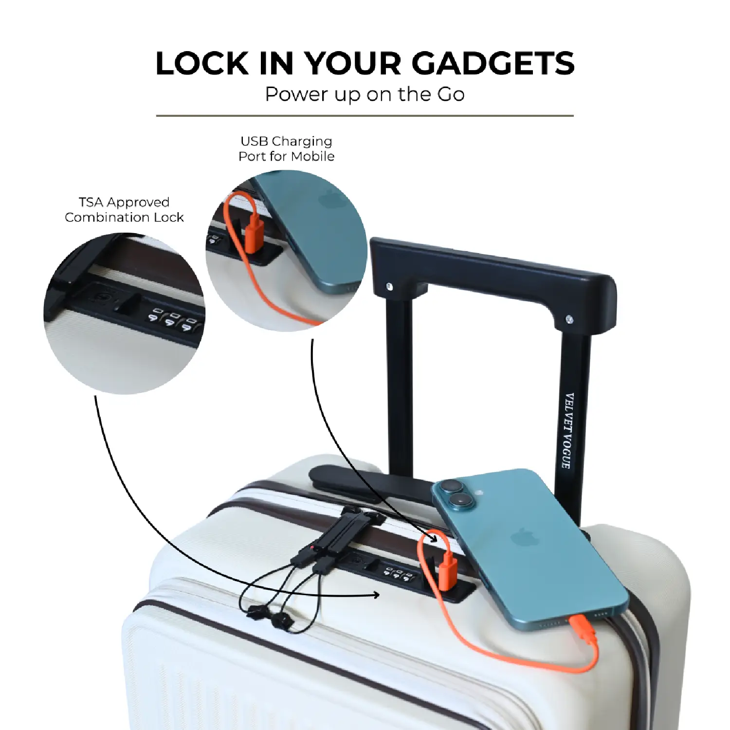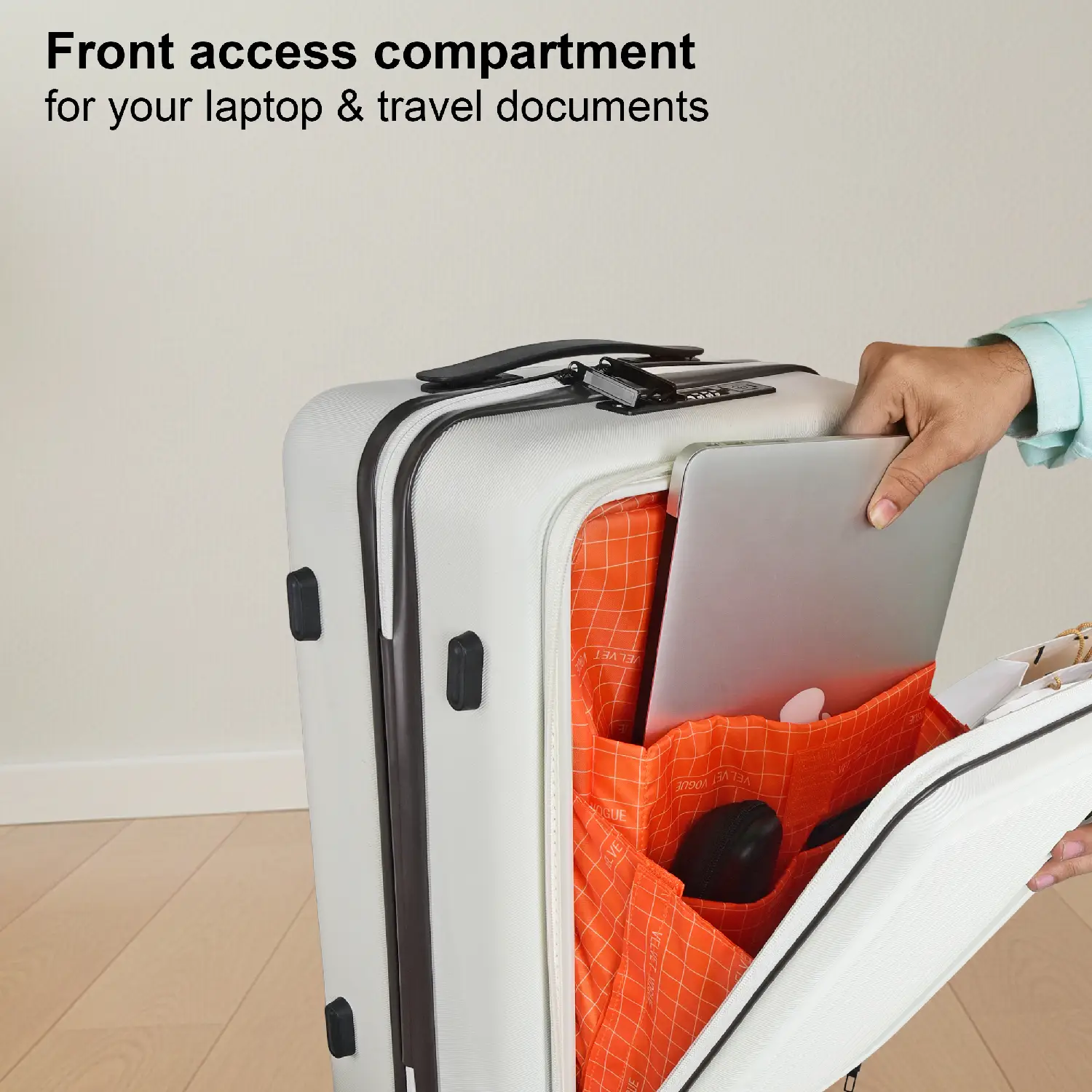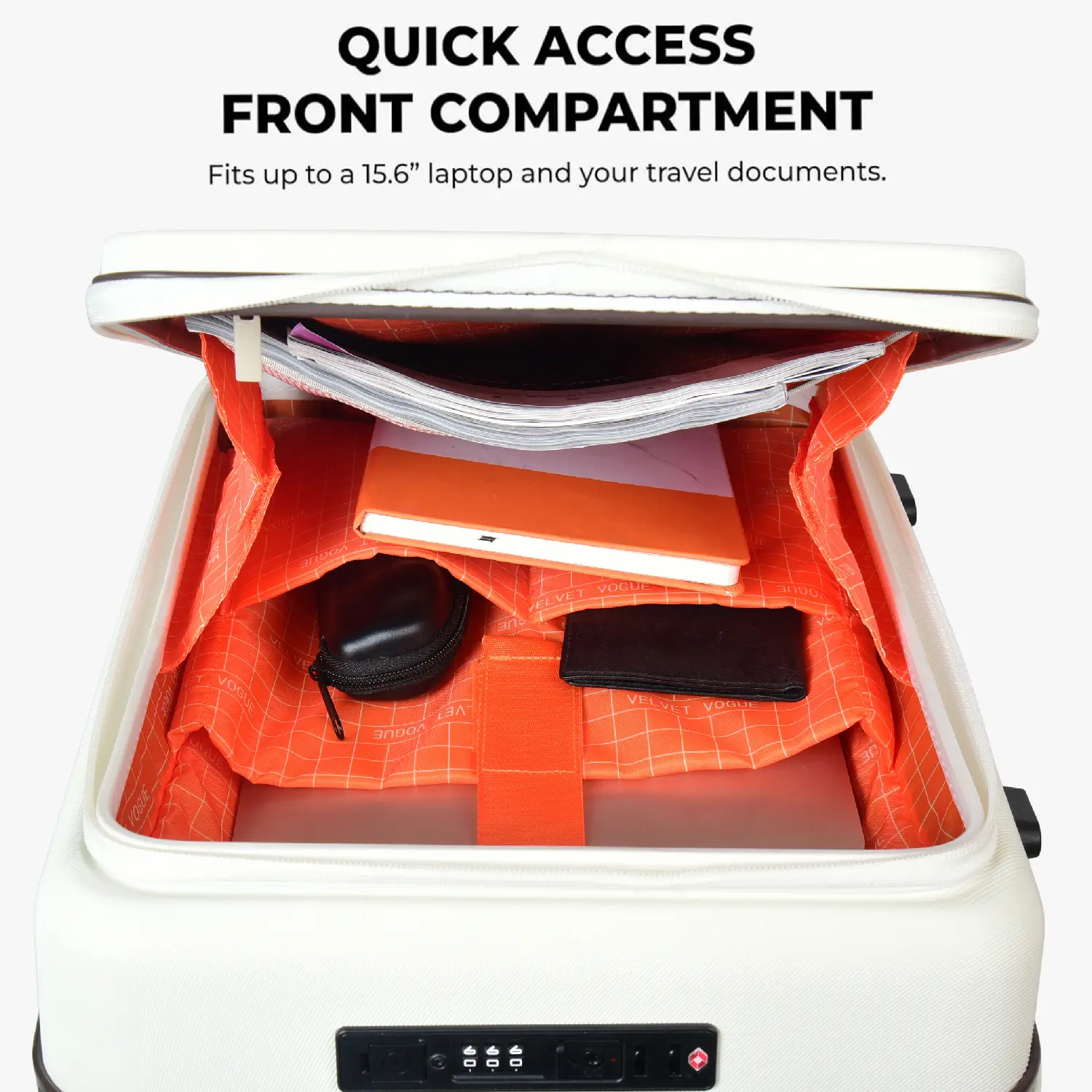 The Himalayan Snow Cabin Trolley Bag is designed for the modern traveler who values convenience, security, and style. This premium carry-on features a quick-access front compartment that keeps your laptop and essentials within easy reach. An exclusive built-in bottle holder helps you stay hydrated during busy journeys. For added safety, the Himalayan Snow Cabin Trolley Bag includes an advanced anti-theft zipper and a TSA-approved lock. Dual USB charging ports keep your devices powered on the go, while the durable, water-resistant polycarbonate hard shell protects your belongings. Lightweight yet strong, the Himalayan Snow Cabin Trolley Bag moves effortlessly on 8 Japanese Hinomoto 360° spinner wheels and a premium aluminum handle, making every trip smoother and more comfortable.