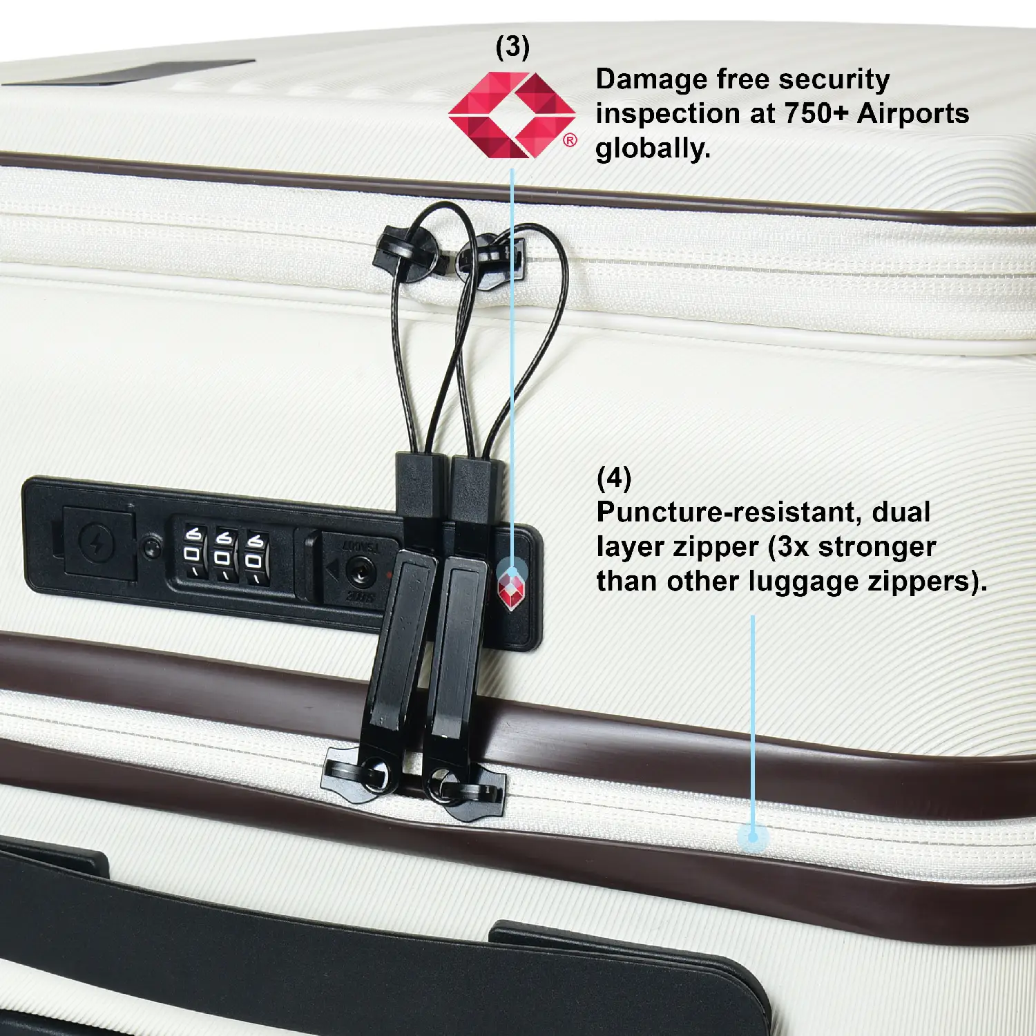 Anti-Theft Security: Equipped with an advanced anti-theft zipper and an integrated TSA-approved combination lock.