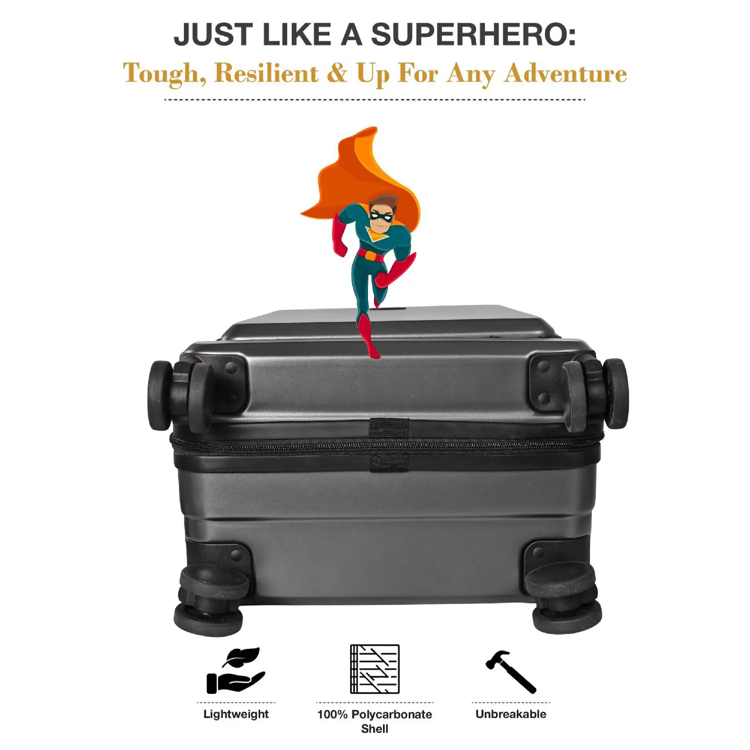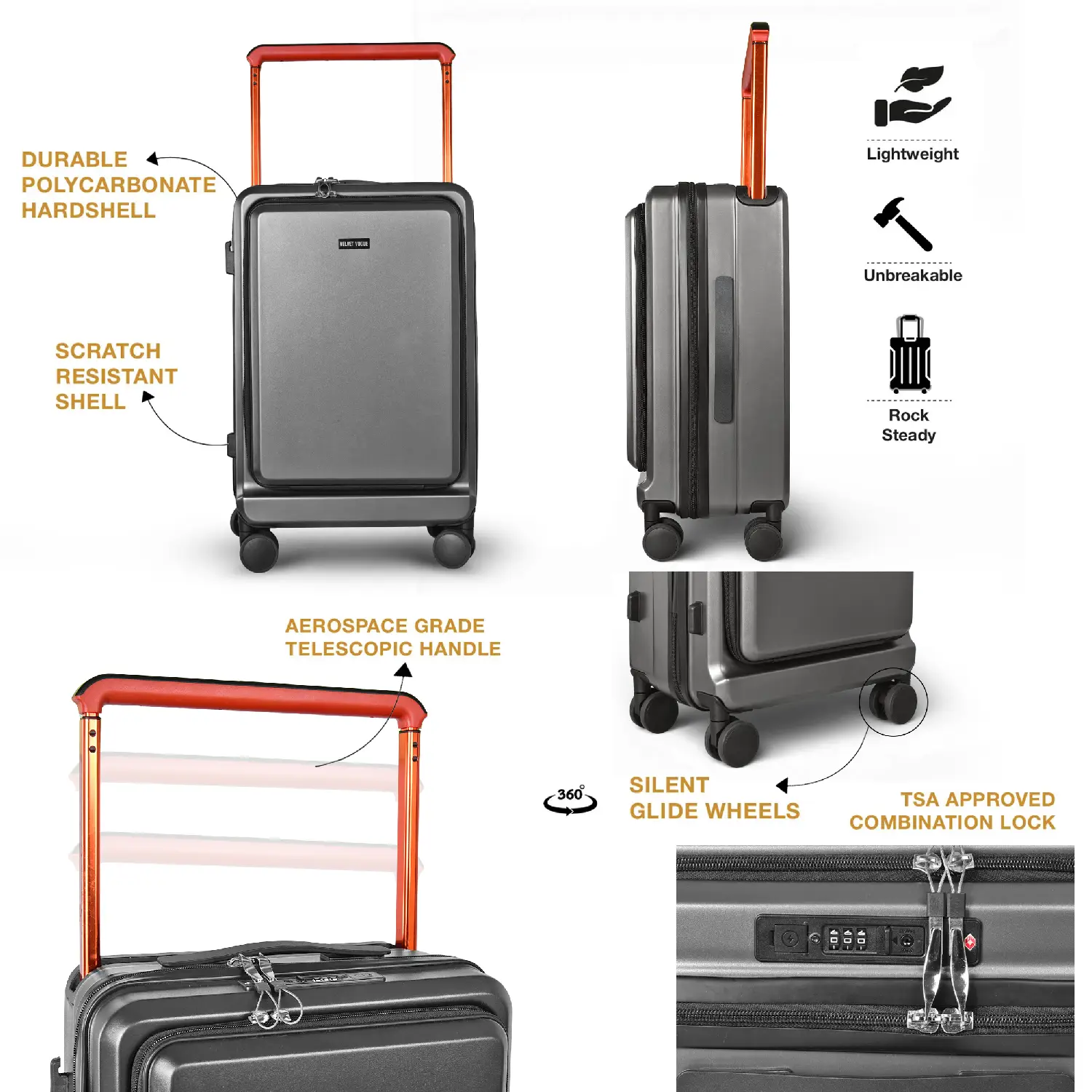 German Polycarbonate Shell: Lightweight, scratch-resistant, and water-resistant hard shell.