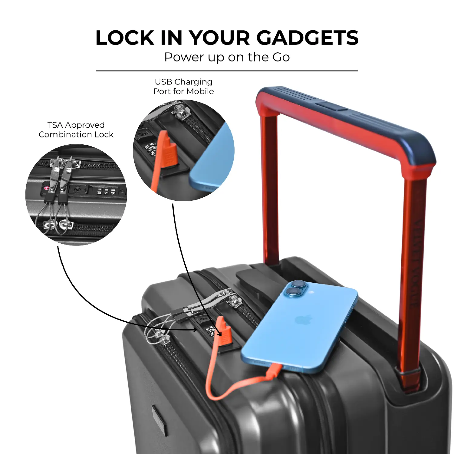 TSA-Approved Lock – Secure international travel with integrated TSA combination lock.