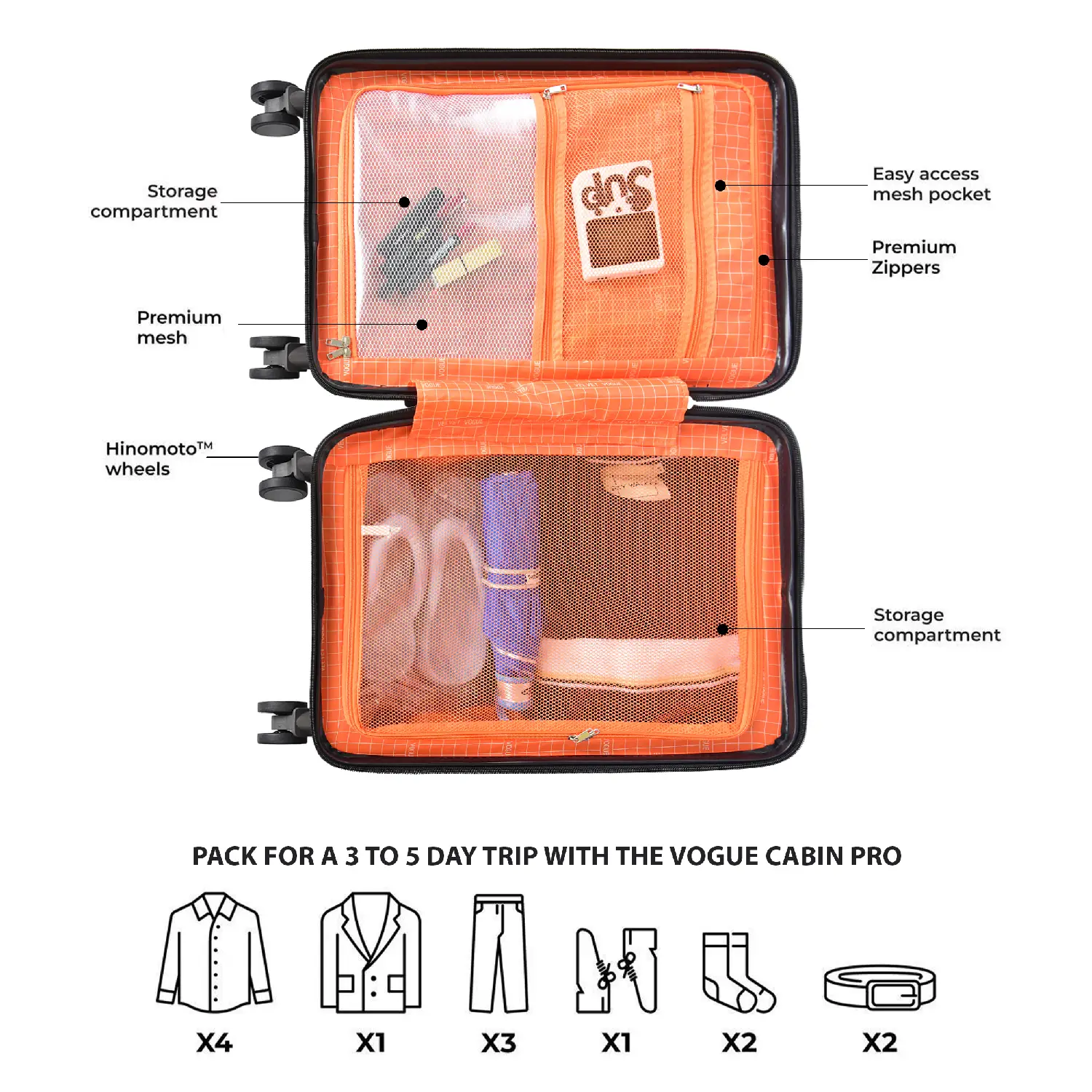 Precision Interior: Fully lined with mesh dividers and cross-straps to organize a 1–5 day wardrobe.
